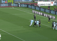 A curling cross is fired in from the right flank and looks set to find Immobile in front of goal, but the striker dives to the floor before it does. He turns and screams to the referee for a penalty, but the man in charge isn't at all interested and waves play on.
