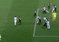 The striker meets it well and manages to cut the ball back to Fabio Borini, who quickly shoots but sends his rushed half-volley wide of the near post.