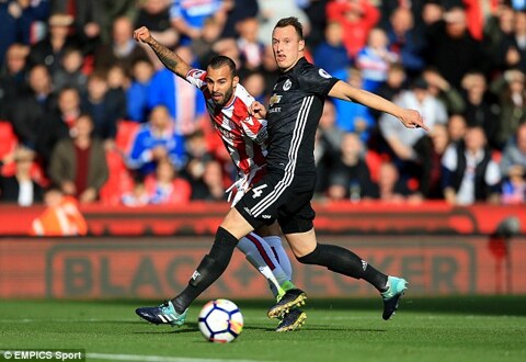 'I think it's a bit lazy to keep on reverting to that Stoke are a physical team thing,' said Hughes. 'I'd argue that in general play they played more long balls than we did because they've got that threat and that's what they try to exploit.'